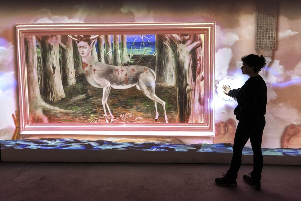 Die Ausstellung geht über reine Projektionen hinaus: In den Türmen des Kunstkraftwerks laden interaktive Elemente dazu ein, Fridas Welt selbst zu entdecken. Digitale Touch-Stationen lassen ihre Werke durch Berührung lebendig werden.
