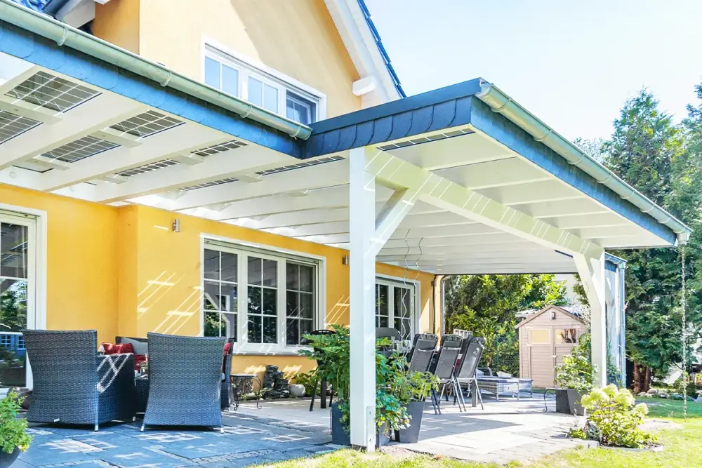 Neben den klassischen Dachanlagen gibt es auch weitere kreative Lösungen für Haus und Garten. Ein gutes Beispiel für Solar Terrassenüberdachungen zeigt unter anderem, wie sich die Module elegant und problemlos in die Terrassenüberdachungen einbauen lassen. So kann mit dem Sonnenschutz im Garten nicht nur ein Wetterschutz geboten werden, sondern es wird auch noch Strom erzeugt.